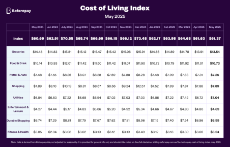 Sydney, Australia – Household utility spending increased 4.8% to a daily average spend of $7.04 in May, according to the latest Beforepay Cost of Living Index. The rise comes ahead of July’s scheduled electricity price hikes and follows a sharp drop in April. Overall spending month-on-month remained broadly stable, with the average daily spend falling just 0.4% to $61.37 in May, suggesting households may be recalibrating after the 4.7% decline seen in April—the steepest monthly fall this year. Year-on-year, the Index rose 1.1% from $60.69 compared to May 2024.